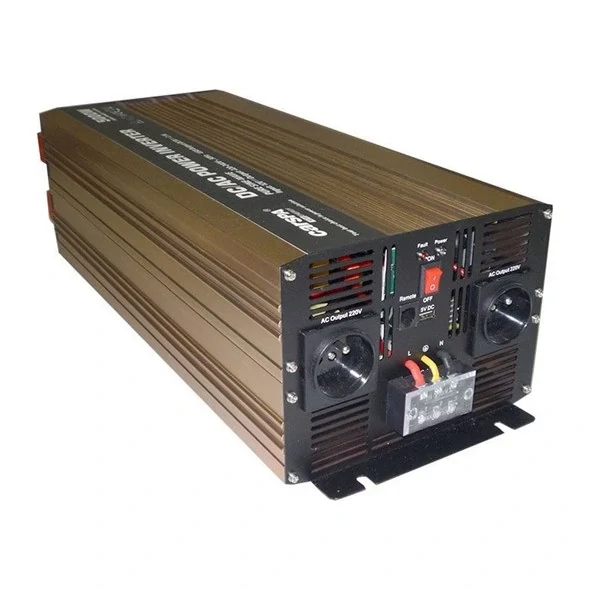 Měnič napětí 12V/230V 5000W, CARSPA P5000, čistá sinusovka. Měnič je vhodný pro spotřební elektroniku, nářadí i jiné spotřebiče s nároky na čistý sinusový průběh výstupního napětí.